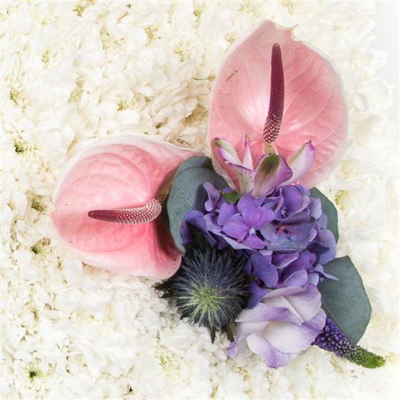 Our open prayer book has a massed white chrysanthemum base with a ribbon surround and two mixed sprays of flowers available in a range of colours.